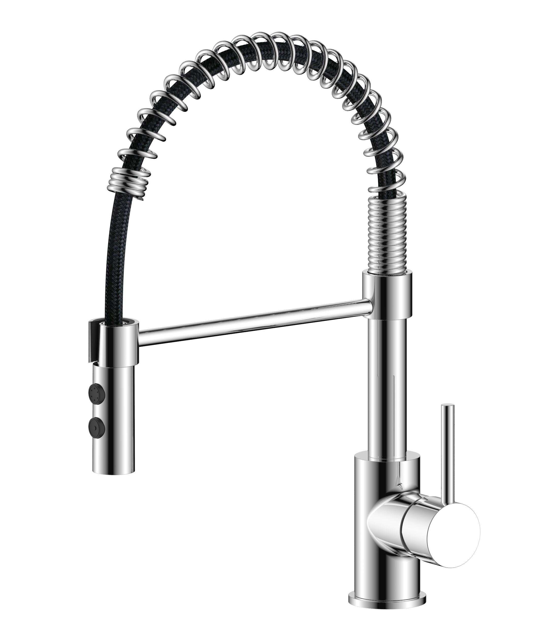 mixer tap with spring neck and dual-jet shower head