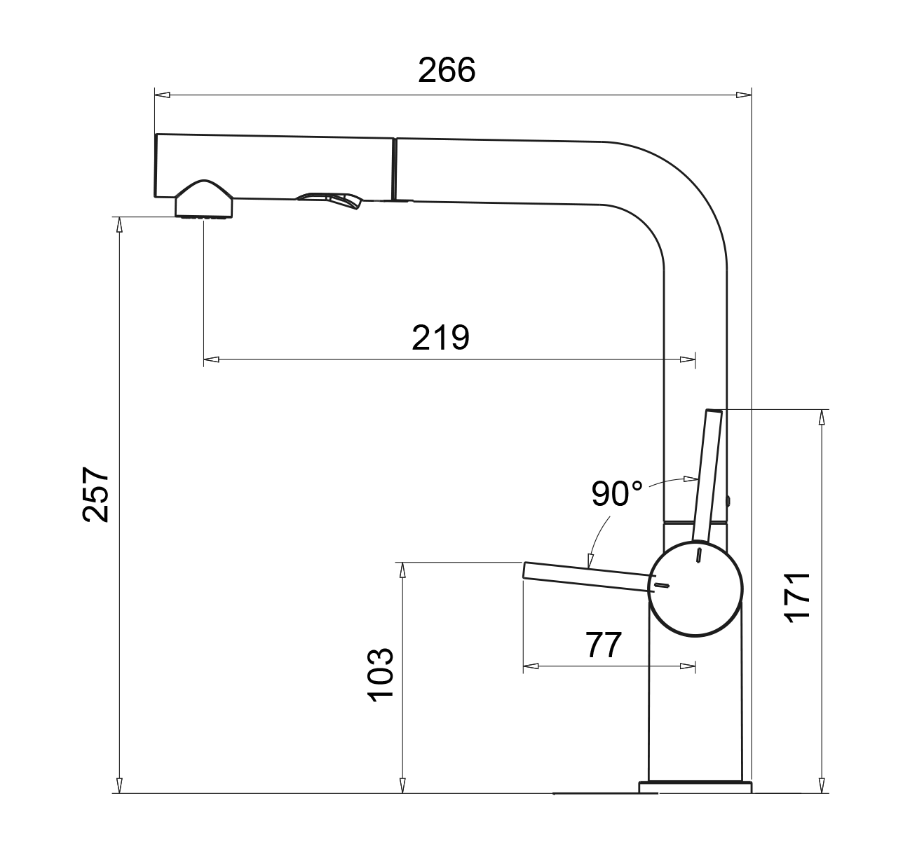 mixer tap with swivel spout and pull-out dual-jet shower head