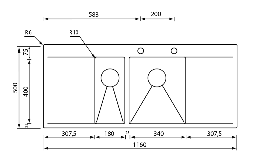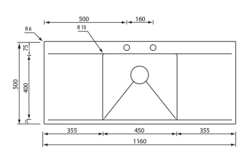 The characteristic features of this model are the side drainers, which add space and practical elegance.