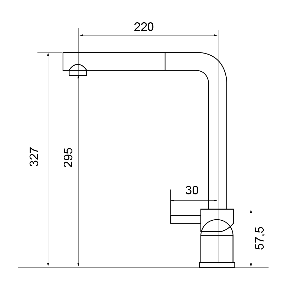 ghiera canna Ø mm 55 - ghiera comando Ø mm 50 - 60 mm altezza minima raggiunta (ingombro del rubinetto con la canna abbassata)